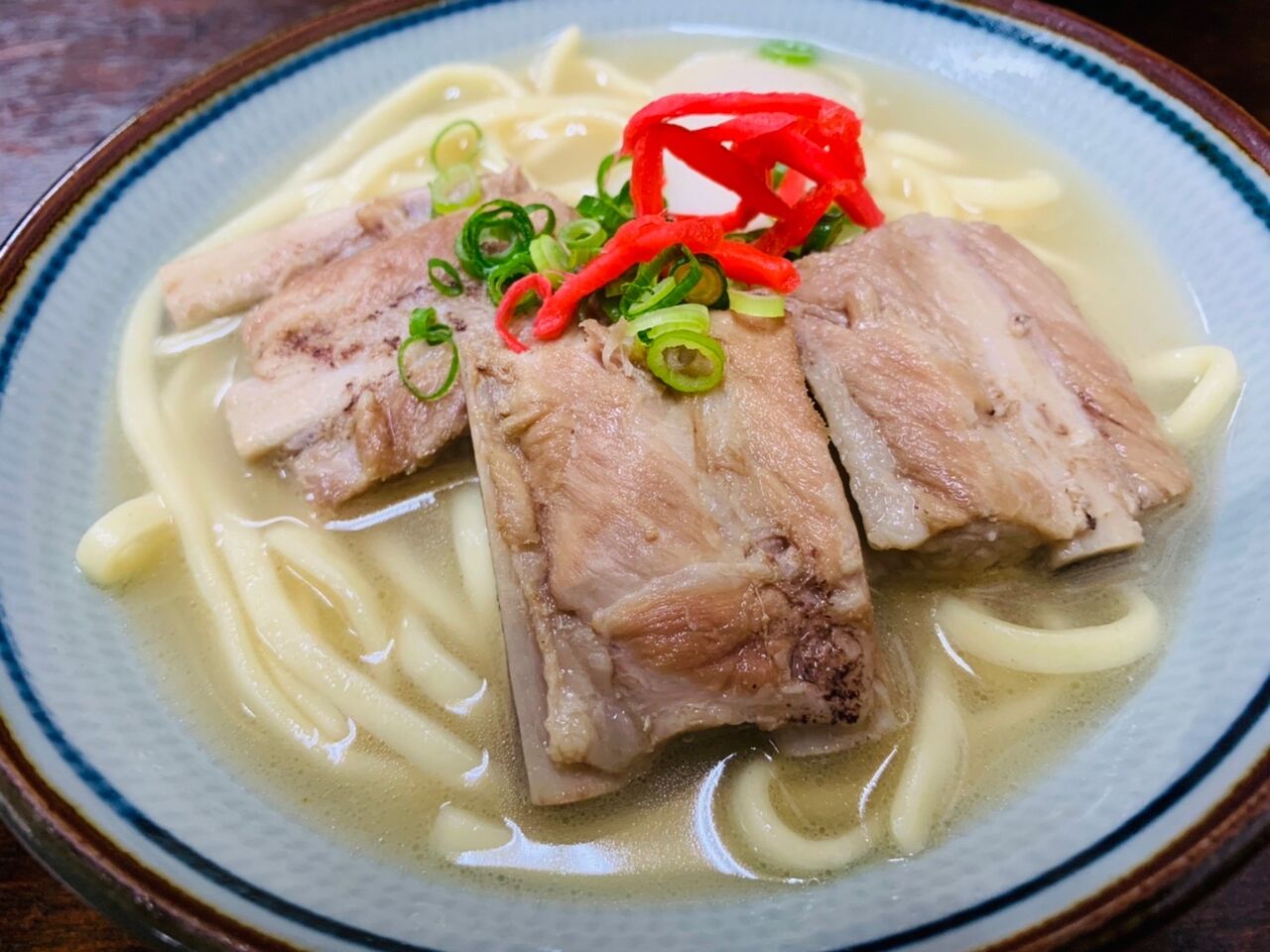 「ソーキそば」をおばあちゃん家に来たような安心感のある雰囲気の中で頂く。