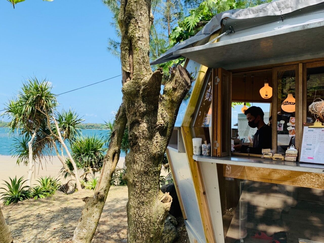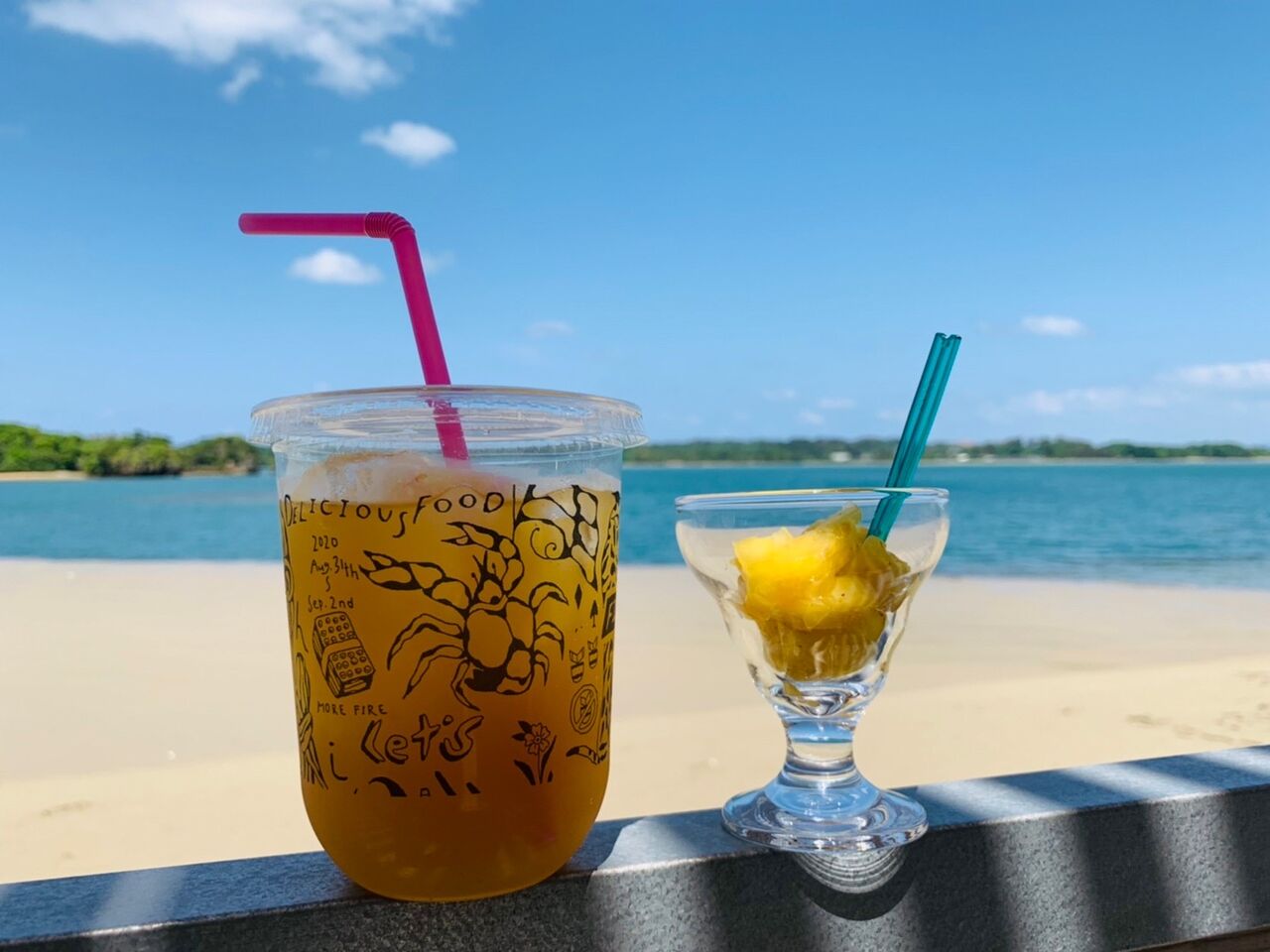 海沿いのカフェでグァバジュースとパイナップルを注文。