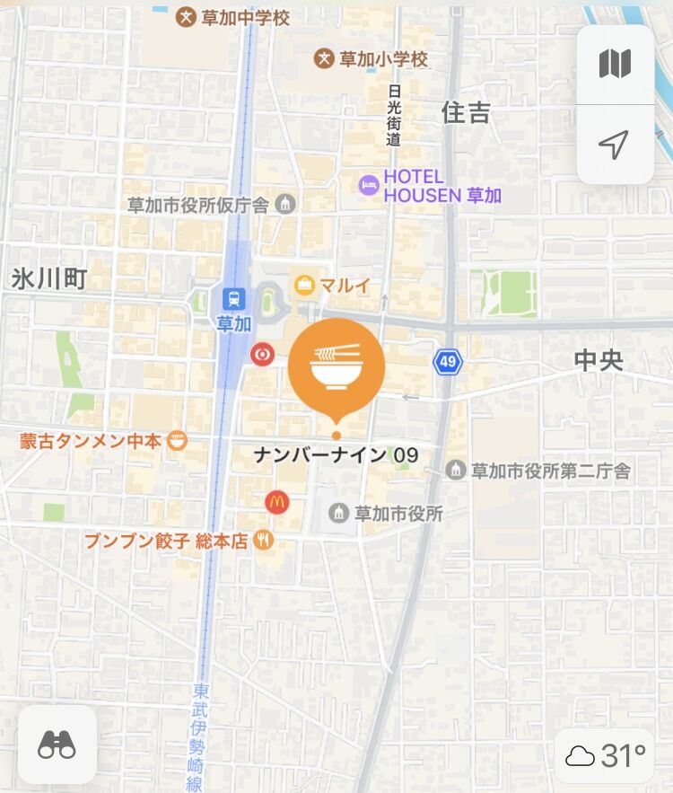 草加市で話題のラーメン屋「麺ダイニングナンバーナイン09」に向かう。