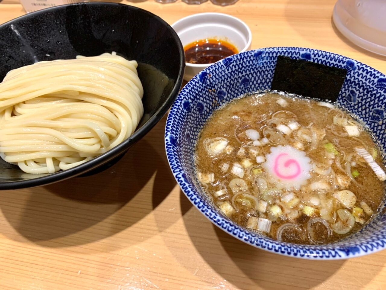つけ汁は節粉と豚骨にかつお出汁が加わり、濃厚ながら上品な仕上がりとなっている。