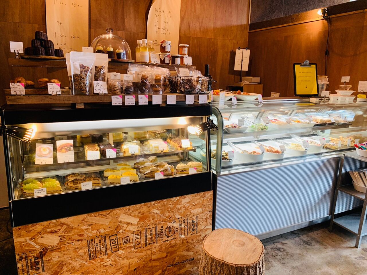 カウンターにはケーキやお惣菜が様々並んでいる。