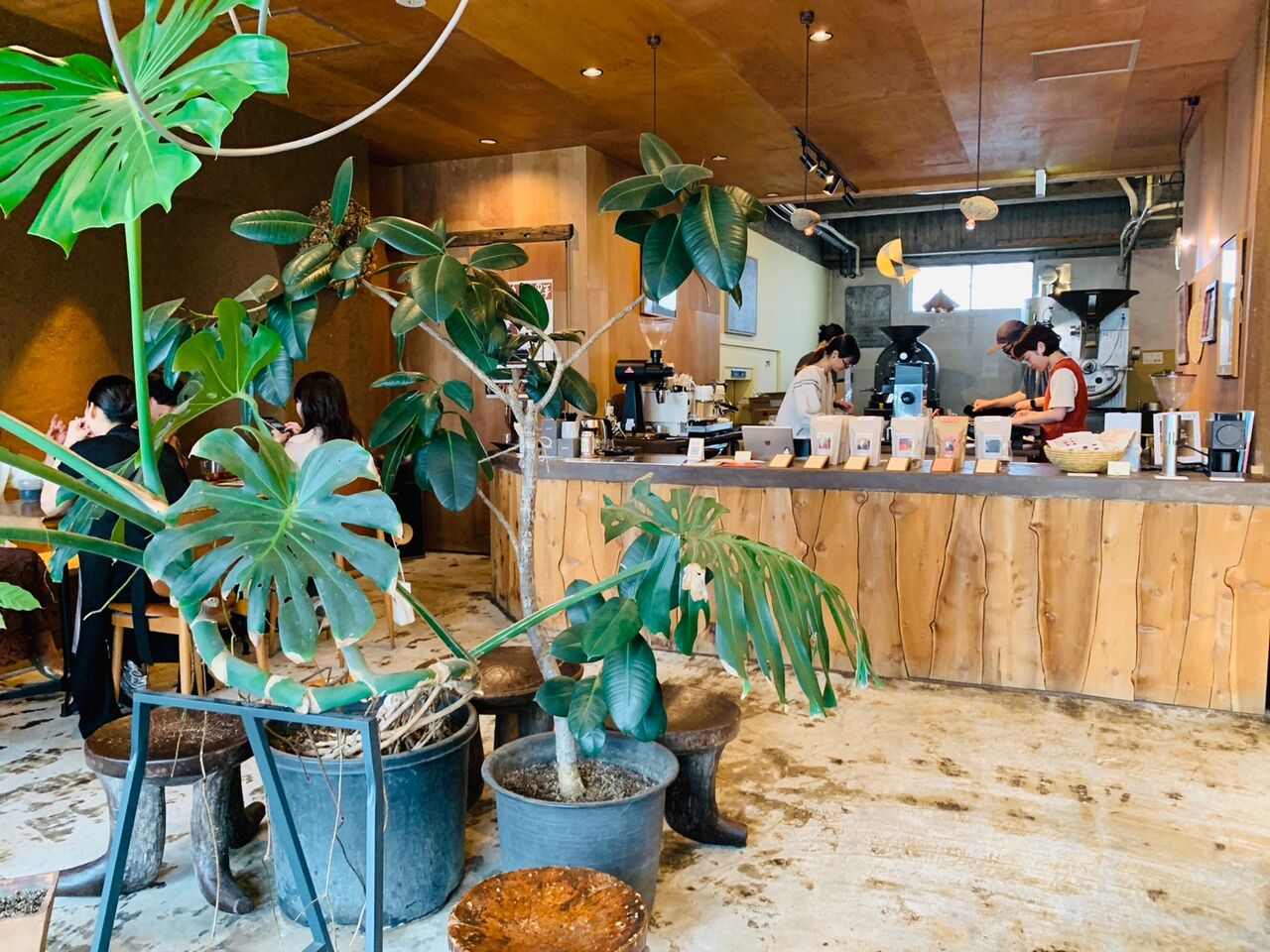 大きな観葉植物が印象的なカフェスペース。