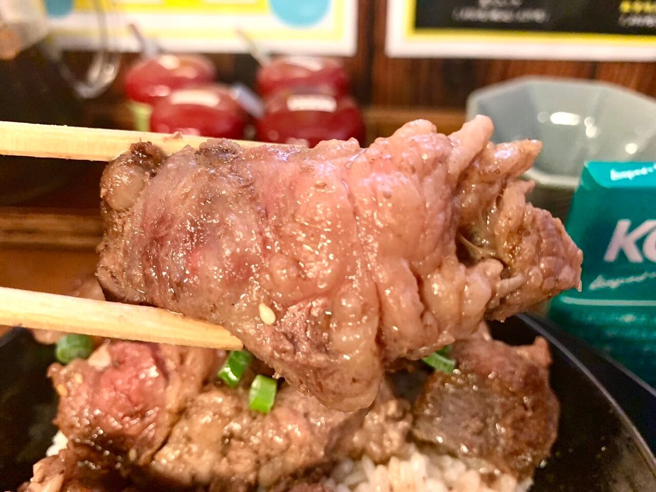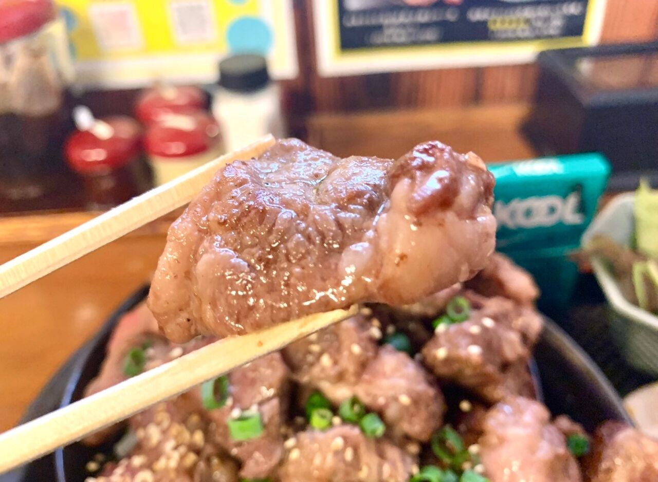 丼にはレアな焼き加減でとろける肉を始め
