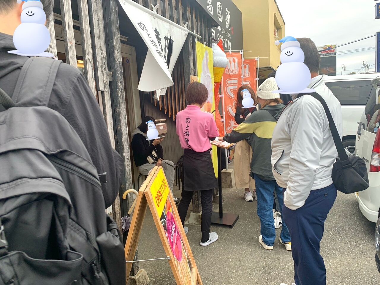 並ぶ際には、紙に名前を書き愛車内にて待機ができるスタイル。