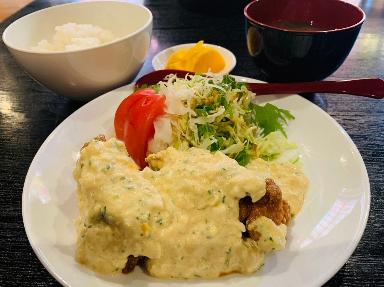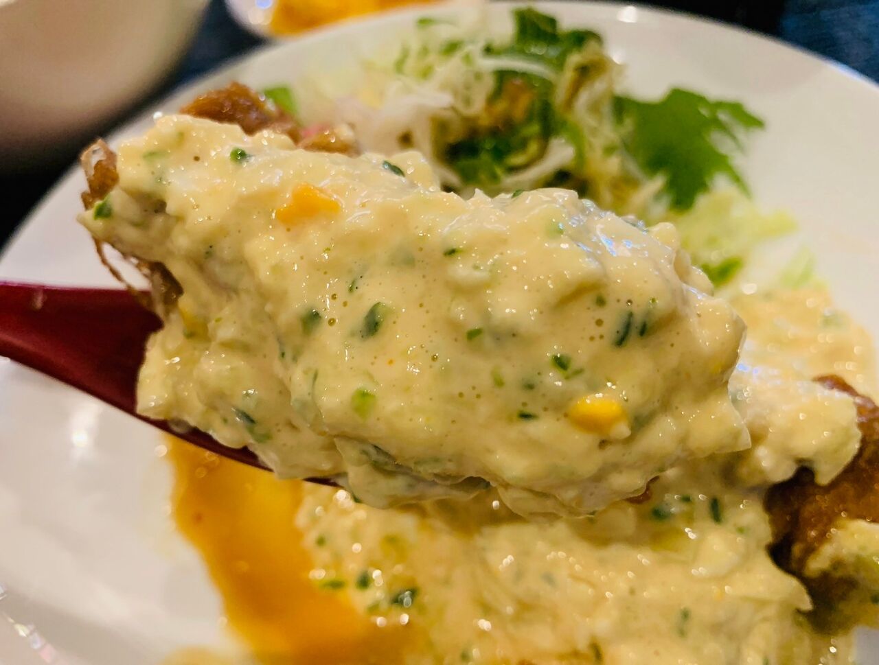 歯応え充分で食べ応えがあるチキン南蛮とソースの相性が良い。