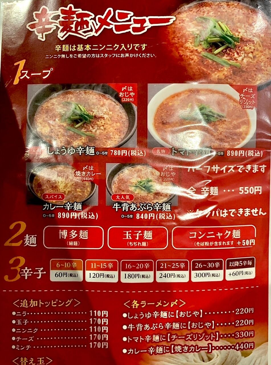 看板メニューはなんといっても「辛麺」。