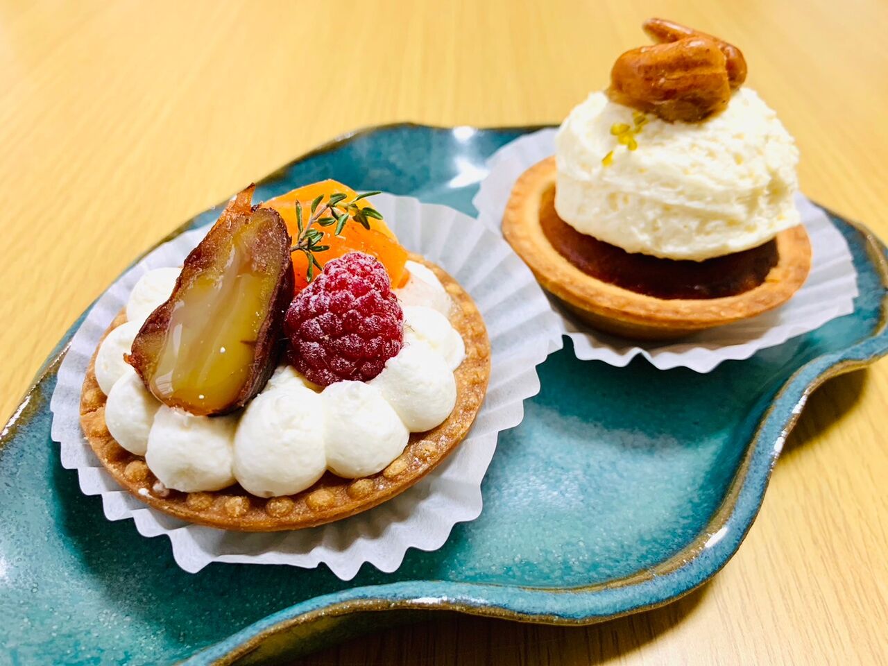 左「柿のクリームチーズタルト」。