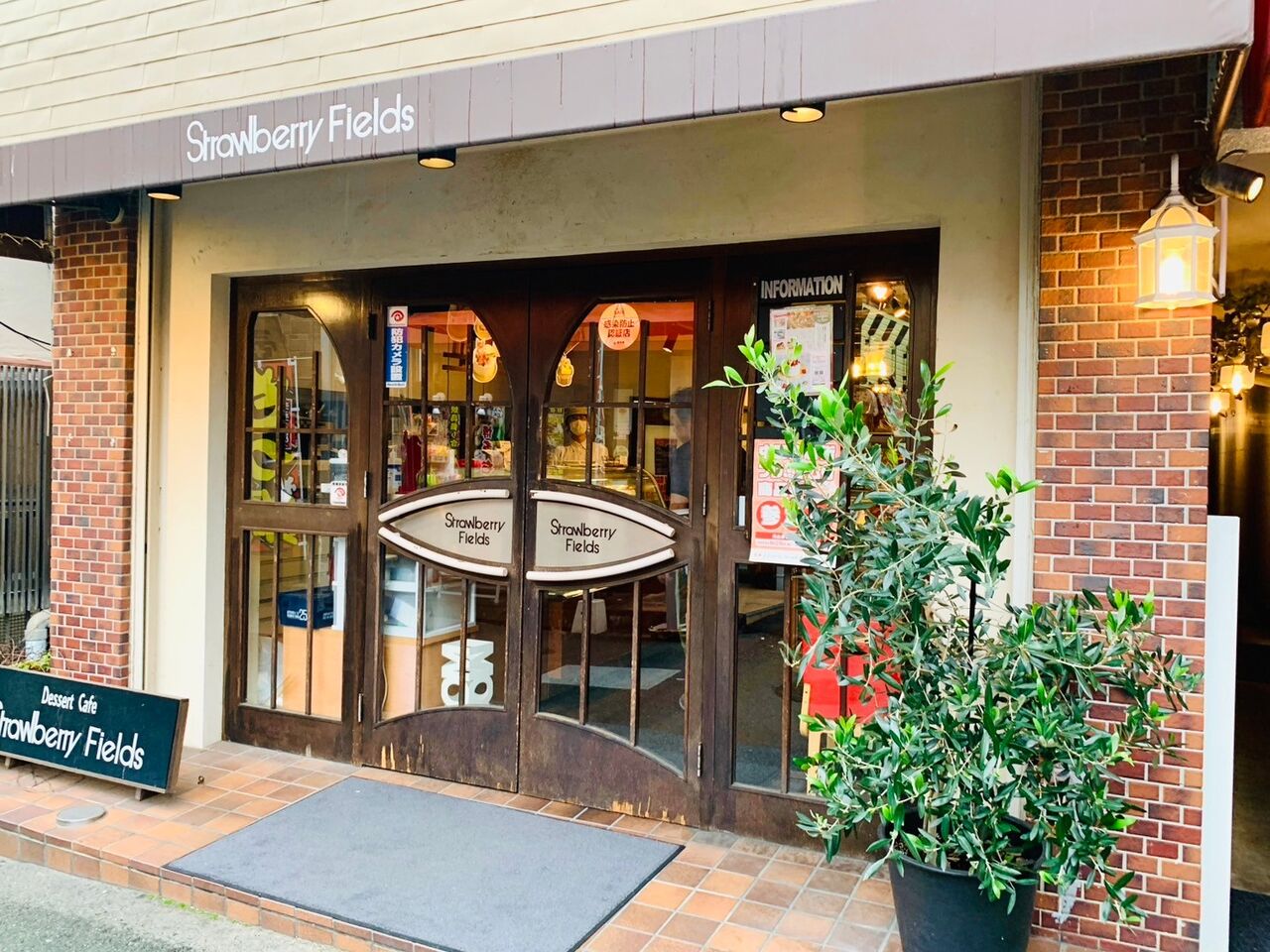 福岡市早良区西新の人気ケーキ店「ストロベリーフィールズ」の前へ。