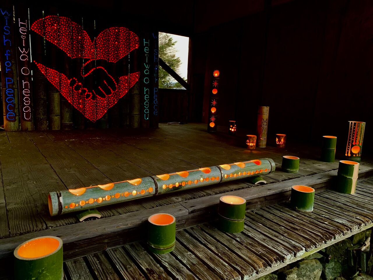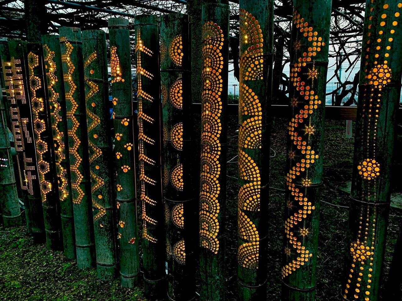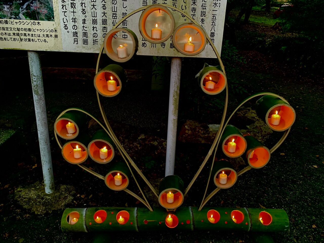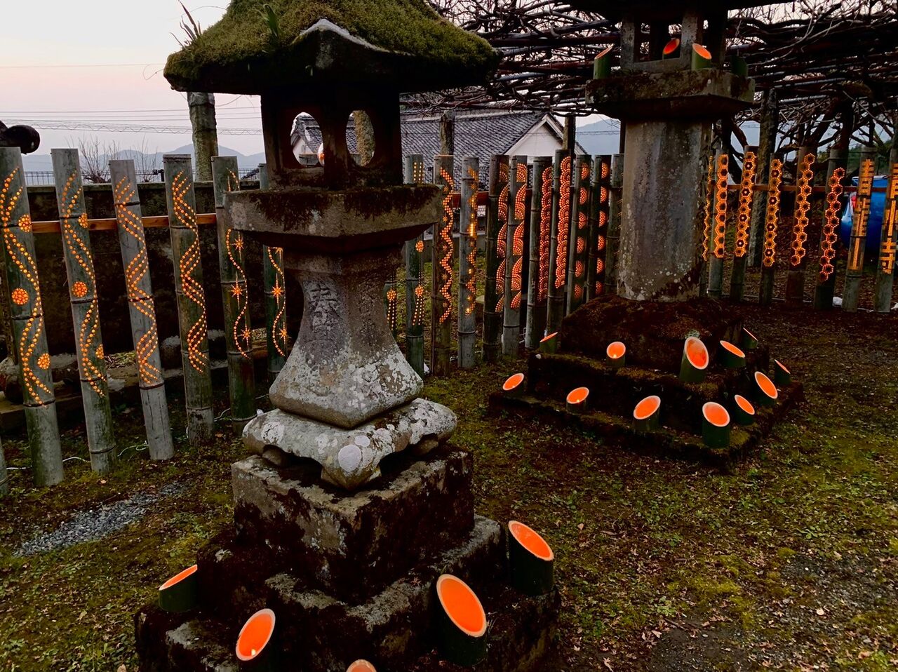 年末年始限定で、17時から境内竹灯籠のライトアップが行われているそうだ。