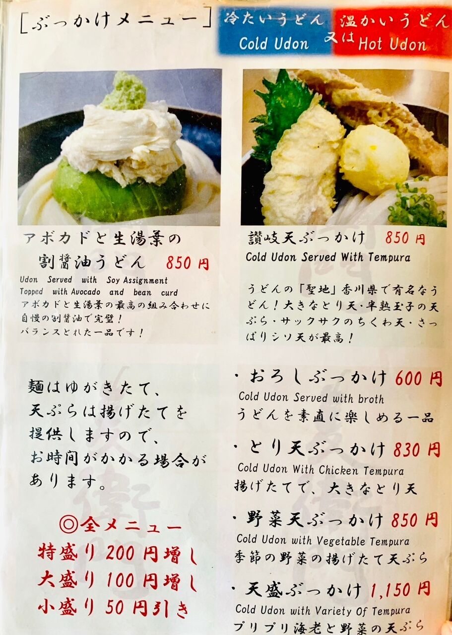 定番の他にもアボカドと湯葉を用いたうどんや期間限定の変わり種うどんもあり。
