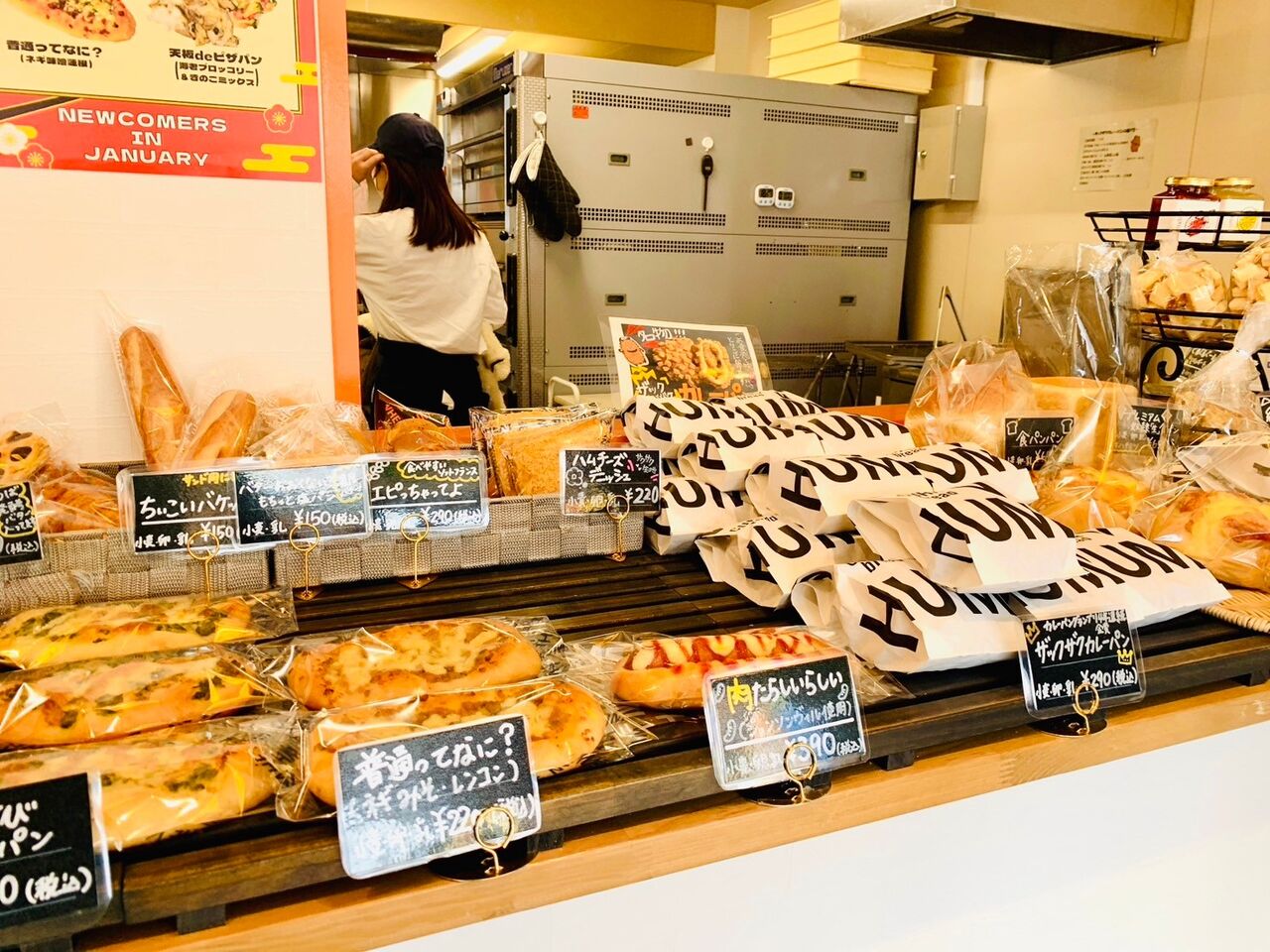 こじんまりとした店内には看板商品のカレーパンを始め、惣菜系からスイーツ系のパンまでバランスよく並んでいた。