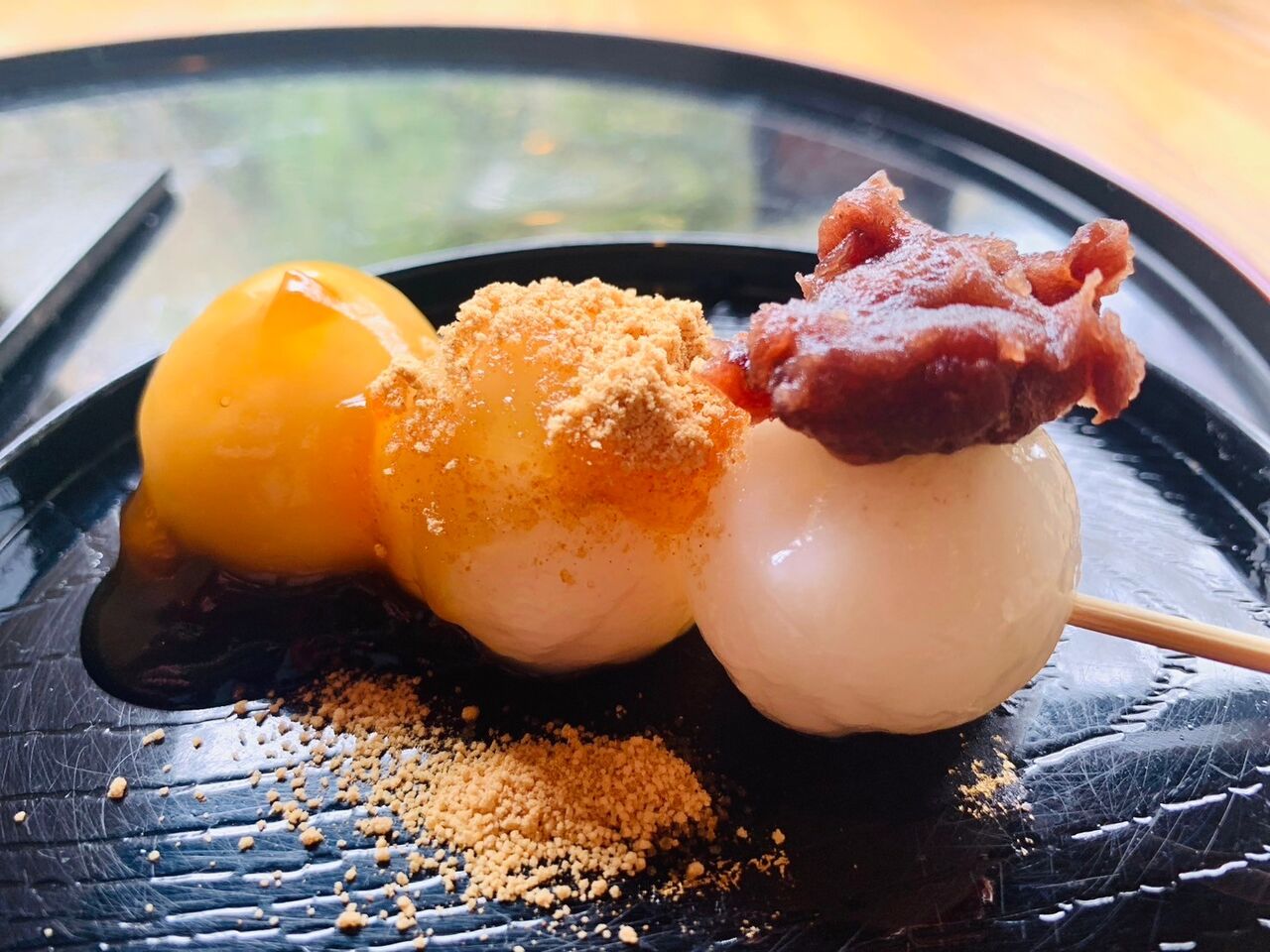 トッピングはきなこ、特製だれ、あんこの3種類。