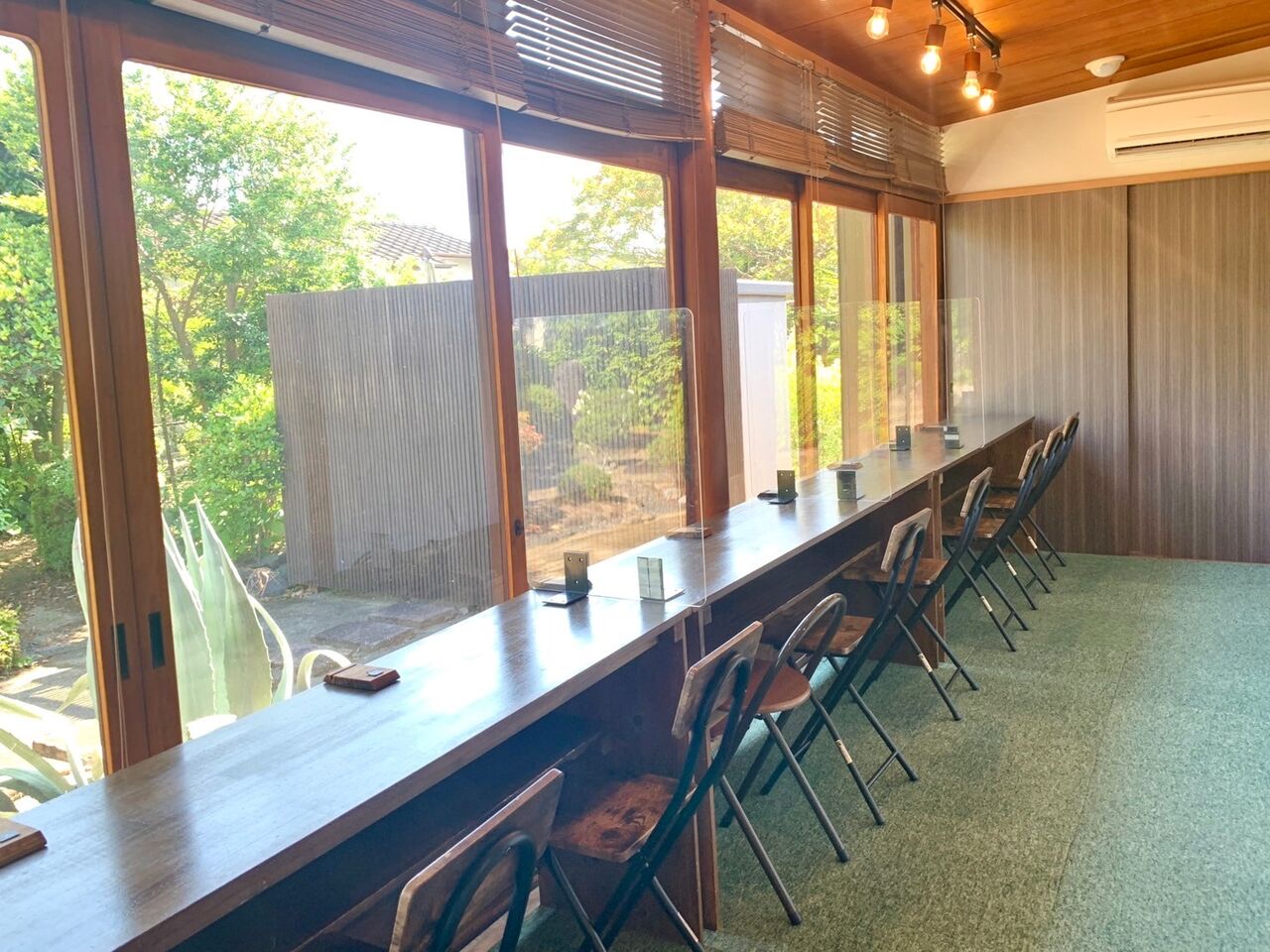 窓からは良く手入れされた庭を眺めることができ開放感もある。