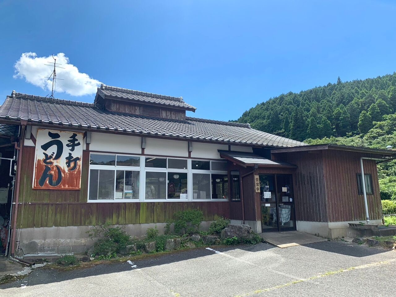「ひの木屋うどん」は福岡方面から向かうと三瀬峠を越えた先の山間に佇むうどん店。