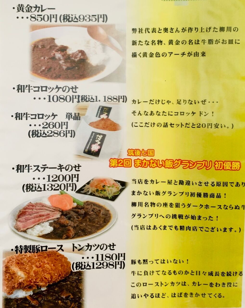 看板メニューはこちらの「黄金カレー」。